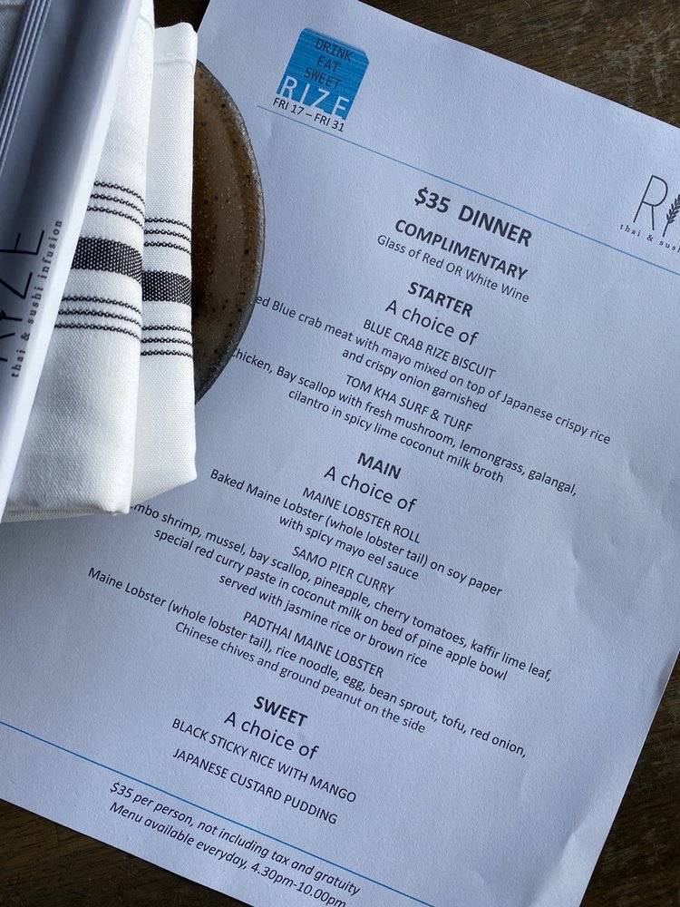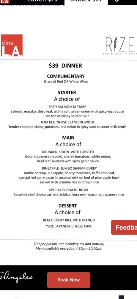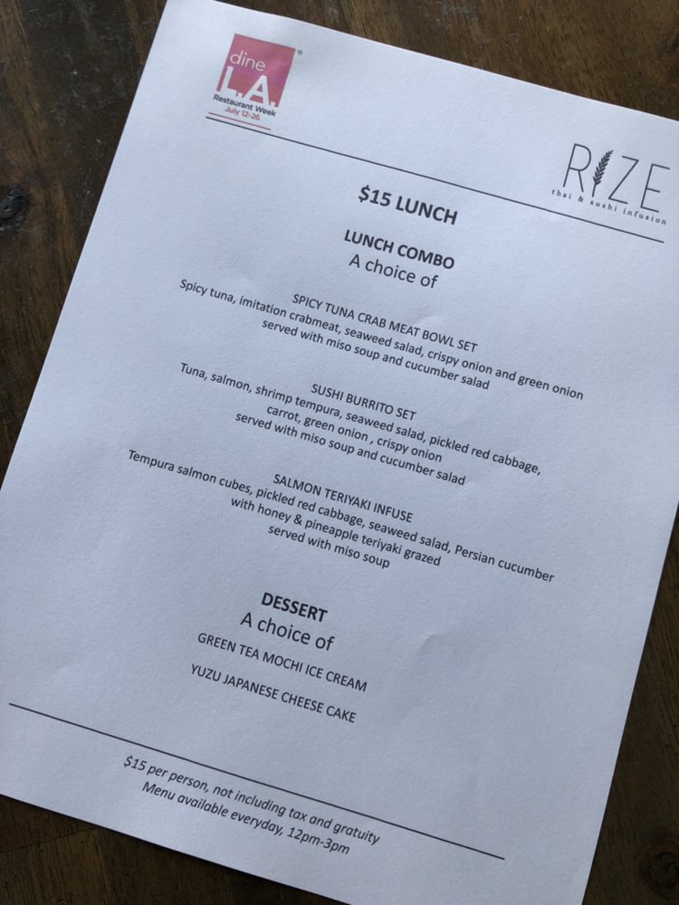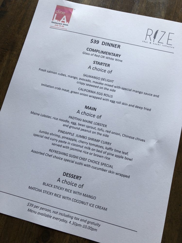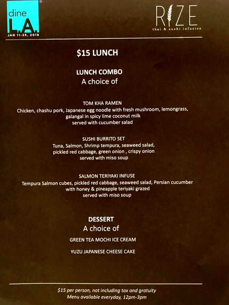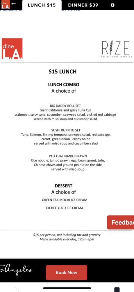 RIZE Thai Sushi, located in Santa Monica, offers a diverse menu with sushi starters, salads, and classic rolls. Customers praise the exceptional quality of sushi and friendly staff. Highlights include the Spicy Tuna on Crispy Rice, Shrimp Tempura, and Sashimi Salad. The ambiance is described as lowkey and chill, perfect for a casual dining experience. Vegan and vegetarian options are available, making it a great choice for a variety of dietary preferences. Customers appreciate the option for both Thai and sushi dishes, catering to differing cravings. The ultimate Dragon Roll is a standout dish, featuring shrimp tempura, imitation crab, eel, avocado, and more. With positive reviews and a relaxed atmosphere, RIZE Thai Sushi is a must-visit spot for sushi and Thai food enthusiasts in the area.